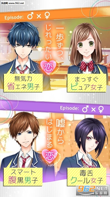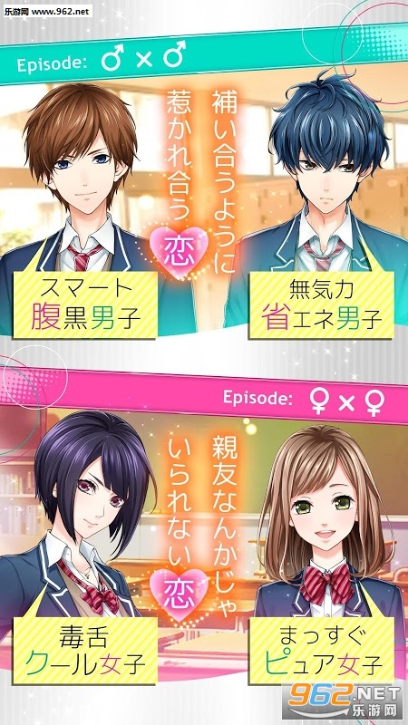 游戏内的配对有腹黑男子×无气力男子,腹黑男子×毒舌女子,无气力男子×纯情女子,毒舌女子×纯情女子……不同搭配的“初恋”,总有一款对你口味的!