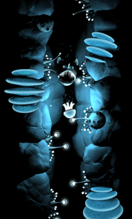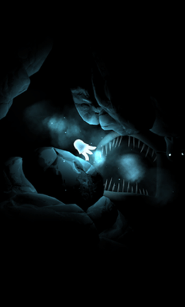 2、伴随着黑暗到来的还有那些大鱼的血盆大口,游戏的操作并不复杂,但是要生存下来可就不那么容易了。