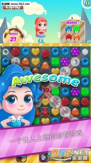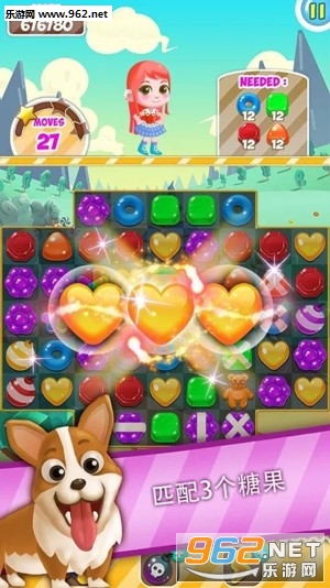 一个简单的益智游戏,匹配相同颜色的3个相同的糖果。