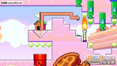 游戏中的主角还是那个身体可以无限延长的小狗,这一次小狗将会面临新的冒险,而游戏中依然采用的是卡通风格的画面设计,游戏中的场景主题还是非常明确的,那就是甜腻的糖果,各种五彩斑斓的糖果、蛋糕、饼干,隔着屏幕都可以让人口水直流。而这个甜蜜的场景中,小狗需要收集那些绿色的钻石,看来这些糖果并不能引起小狗的注意力。活泼动感的背景音乐也是游戏的一大亮点,在这样的环境下玩家可以以一种更为放松的心情体验游戏,既然是一款系列作品的续作,Nitrome的制作已经非常有经验了,本作的质量还是非常让人满意的。