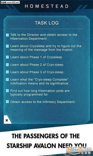 与同名电影联动的文字类角色扮演游戏,未来人类乘坐“阿瓦隆”号太空飞船进行星际旅行,准备前往另一颗星球,每位旅客都需要沉睡120年,电脑的一个小故障却让男女主角“意外”早醒了90年。孤独的太空旅行中,两位孤独的乘客开始相识相爱,但之后他们发现乘坐的飞船出现故障,而拯救5000名乘客的任务就落到他们二人肩上。