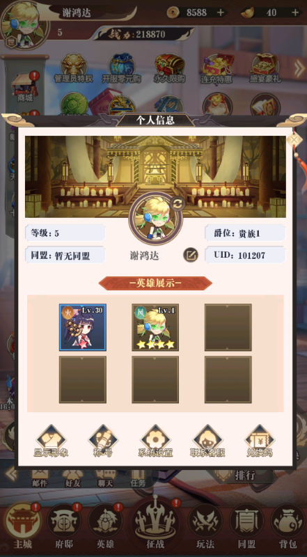 在主城中点击左上角头像