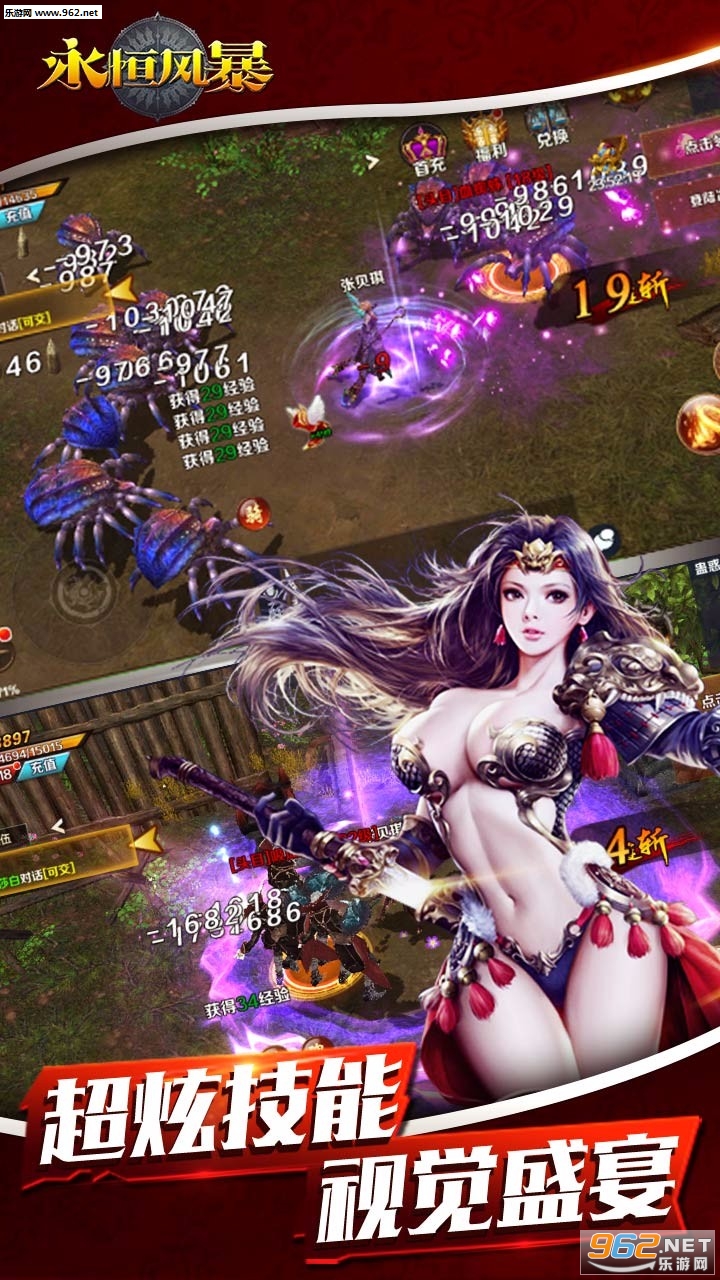 永恒风暴拥有多种对战玩法。跨服天梯争霸赛,积分赛、巅峰战,勇夺万界之王。藏宝地宫经典结合PVE+PVP,上演多人同屏杀怪、夺宝、自由PK的“人怪混战”。“野战”更激烈,世界BOSS更有挑战性。还有血战到底、5V5竞技、公会团战等PK副本,让你战个痛快!