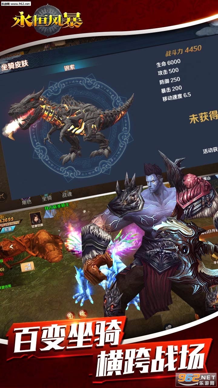 《永恒风暴安卓版》是一款魔幻风格的3D战斗类角色扮演游戏,游戏中玩家可以选择剑士、战士、法师、辅助等不同的职业进行战斗,有着数百种霸气的坐骑可以收集,游戏主打pk玩法,你可以邀上自己的好友来上一波团战,精彩刺激。