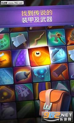 屏幕下方有四个方块,前三个是技能,第四个则是背包,骑士小哥会自行探索地牢,不断寻找怪物击杀,玩家只需要在适当的时候施放技能就好,虽说技能只有三个,但是后期会随着人物等级的提升而不断解锁更强的进阶新技能,并且玩家还可以给技能附上符石,这个又有点像《暗黑3》的机制,所以从技能的变化种类来说还是比较丰富的。