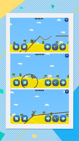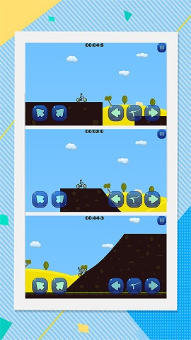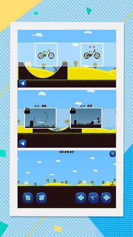 很简单的操作方式,通过控制屏幕中的几个按钮来灵活控制自行车的骑行方向;