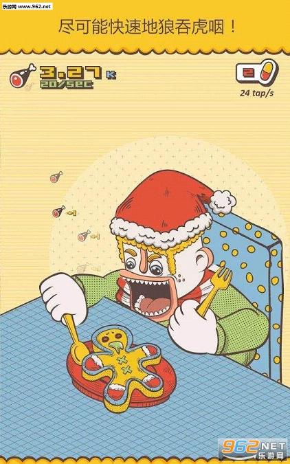 游戏的玩法就是要玩家不停点击屏幕,让屏幕中的角色不断地将一些奇葩的东西比如垃圾或外星人吃进肚子里,而在点击的同时也会产生大量的鸡腿,让玩家能够购买更难吃的食物以及扩张角色的胃容量,同时游戏还要求玩家在角色进食的过程中去消灭蟑螂完成各种任务,趣味性十足。