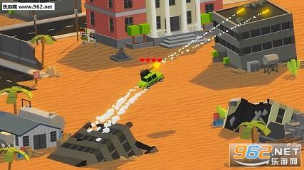 游戏中我们将来到一个空旷的小镇,这里有宽阔的道路以及大片的草地,偶尔几幢零散的房屋坐落于此,这里就将是我们战斗的地方了。游戏采用横版3D画面呈现出一个方块像素世界,不管是房屋建筑、树木草地,还是我们驾驶的小车,全部都是像素方块造型,看起来颇有一丝抽象意义。虽然画面上毫无真实可言,但是战斗中的表现依然十分激烈,各种物理碰撞以及弹药呼啸而过的场景,再加上车辆爆炸所产生的火花光效,这些无疑不刺激着玩家们的感官神经。
