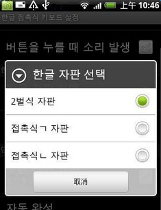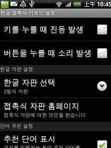 一款韩语输入法,支持屏幕触摸输入,也支持G1的硬键盘输入.跟Google拼音一样,用Shift+空格来切换英韩输入.安装方法:程序安装完成后,在设置—区域和文本里钩选上韩语输入法,设置好相应的辅助功能,之后在短信/文本编辑的时候,按住输入框,在弹出的编辑文本—输入方法里选中韩语输入法即可.