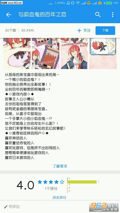 《与吸血鬼的百年之恋》是一款小清新的休闲游戏。游戏的主人公小樱从祖母哪里得到了一个美丽的珠宝盒,然而,从盒子中却藏着一只巴掌大小的吸血鬼,在她身上到底会发生什么呢?让我们一起享受这个轻松愉快的玄幻故事吧!