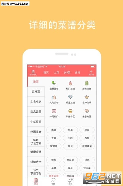 我们将美食天下上百万篇菜谱,结合十二年的运营经验、菜谱大数据,进行了多达14个维度数百种分类。包括家常菜谱、西餐菜谱、烘焙食谱、儿童菜谱,等等。同时我们全新改版搜索功能,并将不断推陈出新。