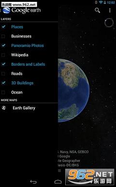 集成到地球中的Google地图街景视图可让您穿街走巷、品味世界。您可以浏览到包括公路、边界、地点、照片等在内的各种图层,可以访问Google地球图库,发掘有趣的地图细节,例如实时地震、航行中的飞机、远足小径、城市旅游路线等。