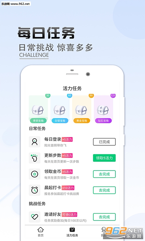 查看历史中的运动步数,记录消耗卡路里,健康生活时刻拥有。步数挑战赛、晨起打卡赛。