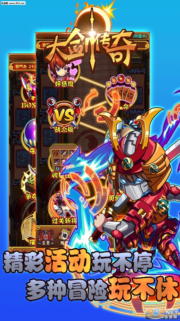 《大剑传奇》是广州天海网络年度手游大作,集合Q萌人设、恶搞剧情、策略战斗、丰富收集等众多玩点,并创新怒气技、武将培养等创新玩法!让我们一起体验剑客之道,看看你是不是真正的玩剑高手!