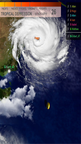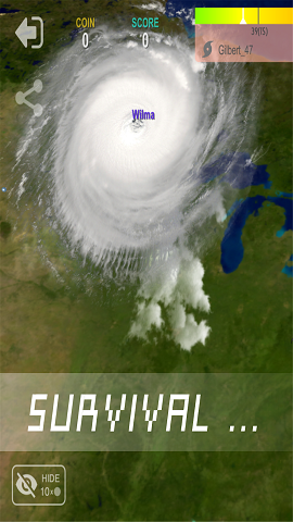 开局只是一团不起眼的云,你的目标是成长为超级飓风。在这过程中你要不断吸取地球上的能量,还要面临来自世界各地的强大竞争者,他们无时无刻想要吞食你。你的能量来源是空气中或海面上的水和热能,去猎杀比你小规模的飓风会使你迅速的成长。飓风的理想生存环境是在海面上,陆地会消耗你的能量,但如果你足够强大,没有什么能够阻挡你。