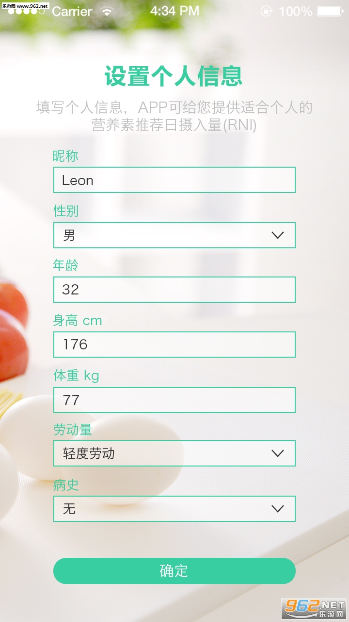 2、用户能在线输入个人信息,APP可以根据你个人的情况,为你推荐合适的营养摄入量。