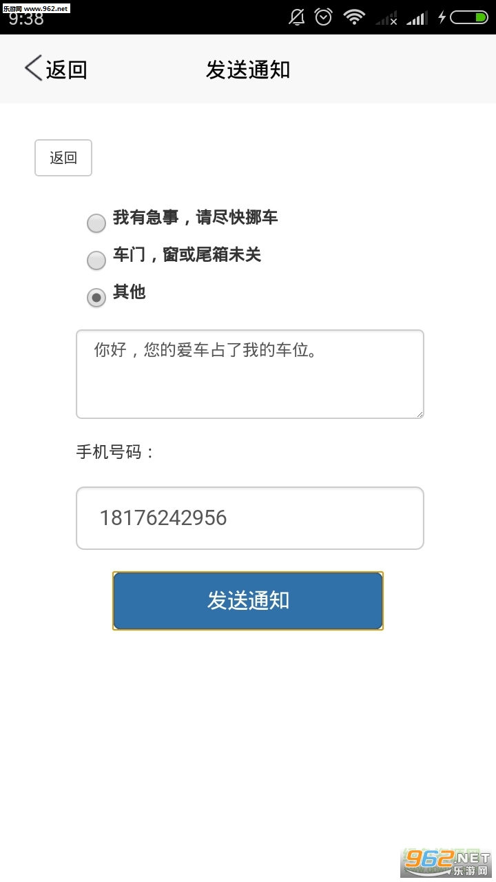 《车乐邦app》这个通知挪车的神器我用了下,很好用,代替挪车电话牌,保护了个人隐私,推荐给您。多重纬度(App通知,短信,电话)保证及时的通知到车主,快速,便捷的解决掉占车位的烦恼。