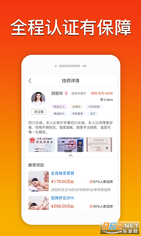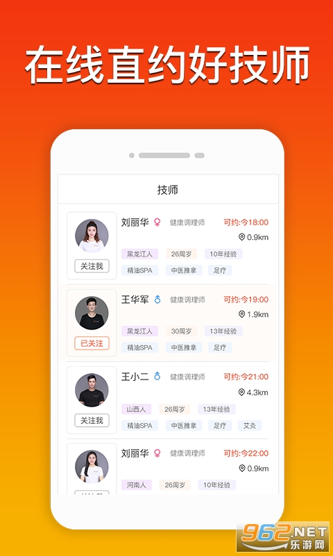 【我的】:可以查看自己关注的技师,也可联系客服,技师应聘等体验。
