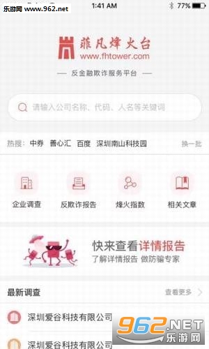 《菲凡烽火台app》提供企业和个人的反欺诈机构服务,应用程序提供了一个特别调查报告非凡烽火台;烽火台APP非凡的大量欺诈收集的数据,金融专业人士和机构发布的风险报告筛选后,智能防欺诈服务。