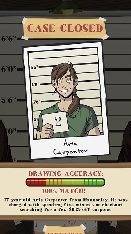 在这款全新的侦探游戏中展示您的素描技巧和解谜技巧!听从线索,勾勒出罪魁祸首,然后将他关在监狱里!你能用你的大脑逮捕所有的坏人吗?切记要小心,并确保仔细阅读所有线索!