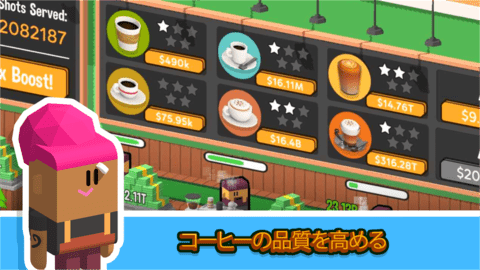 放置咖啡店免费版是一款模拟经营类游戏,玩家需要管理一家咖啡店,并成为咖啡业的领先者。在游戏中,您可以聘请店员、店长赚更多的钱,赚到钱还能升级咖啡品种,升级咖啡销售台,让您的咖啡店能够发售更多的咖啡,让更多的客人得到满足。