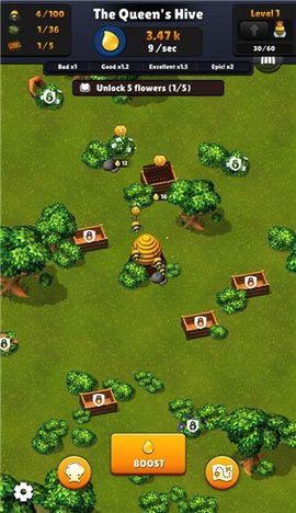 闲置蜜蜂帝国是一款轻松有趣的休闲解压手游,在此游戏中,玩家成为养蜂人,您需要计划一个养蜂场,这款游戏简单有趣,操作难度中等,非常适合玩家休闲和娱乐,您可以随时享受游戏的乐趣,游戏和游戏画面精美,可以为玩家提供绝佳的视觉体验。