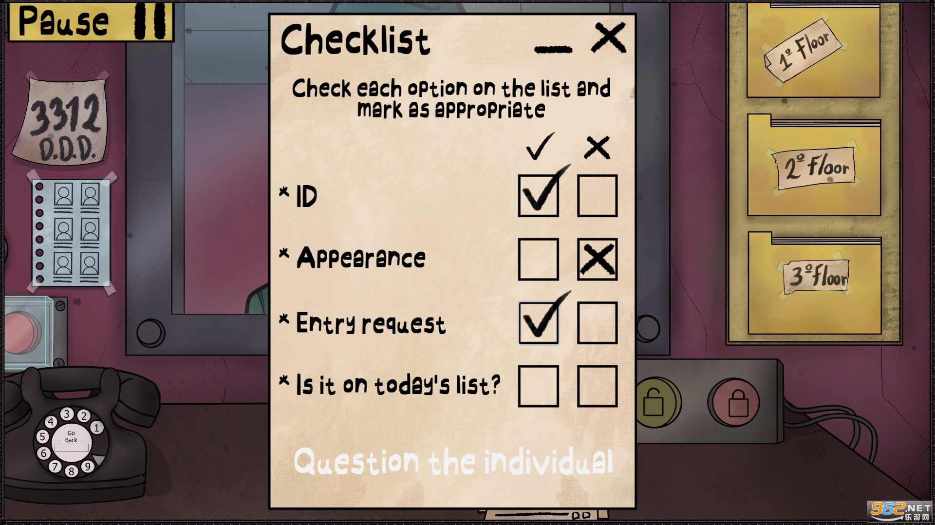 你的工作将是允许或拒绝请求进入建筑物的对象进入,这看起来很容易,但要小心,你不能忽视任何细节,因为你可能会成为伪人的食物。