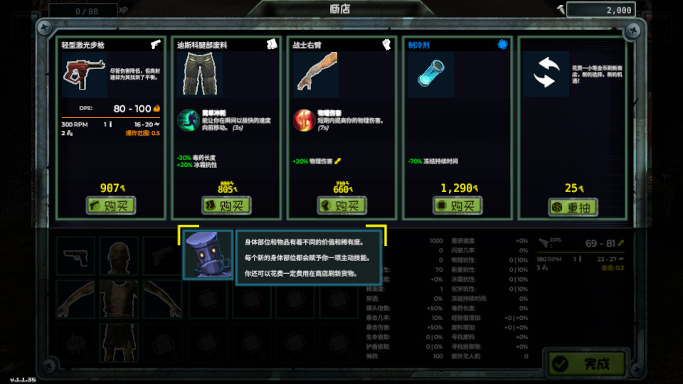 收集废料在关卡之间购买或升级物品或身体部位