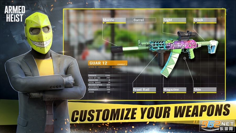 可自定义的武器系统 - 建造您可以想象的最疯狂的,改良的枪支!手枪,shot弹枪,狙击手和突击步枪!下一个银行抢劫尽可能致命的武器库!