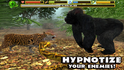 使用锋利的獠牙,快捷的速度,催眠凝视追捕美味的小动物,对抗危险的热带雨林动物,如大猩猩等!