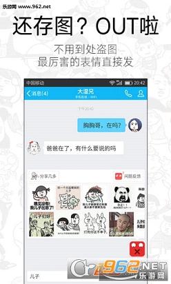 海量表情库:不用先下载任何表情,直接给你最in最合你心意的表情,点击就发送!这里有:金馆长、张学友、姚明、尔康、萌娃民国、阿拉蕾、熊本熊、费玉清、鹿晗、葛大爷、LOL、葫芦娃、李易峰、tfboys、香菇、蓝瘦……怎么贱,怎么浪,怎么萌,那就怎么来!