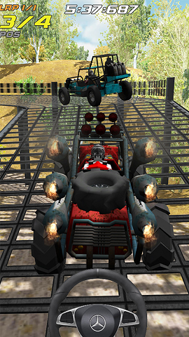 越野怪兽赛车游戏中感受崎岖路面和森林路轨的极为风险刺激,在越野车路轨上行车。