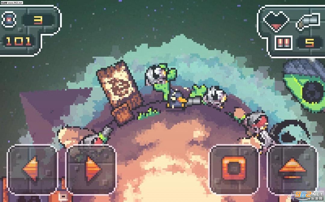 玩家将扮演一只战斗的鸭子,你需要通过点击跳跃来躲开敌人,并在这个星球尽可能长的生存下去。