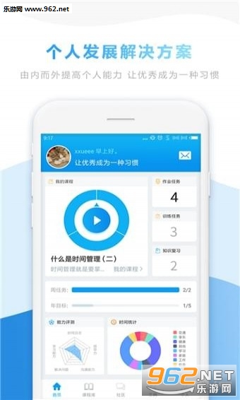 【优质课程】:一期聚焦通用的核心能力,从目标制定、时间管理(自我管理)、沟通与协作、解决问题能力和影响力出发,全方位修炼内功(二期会拓展至技能和行业知识,敬请期待);单课时10分钟左右,可以充分利用碎片化时间完成体系化学习;