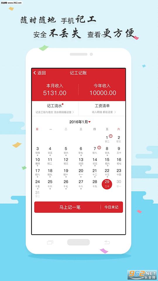 2、手机随时记工天、账目明细很清楚;