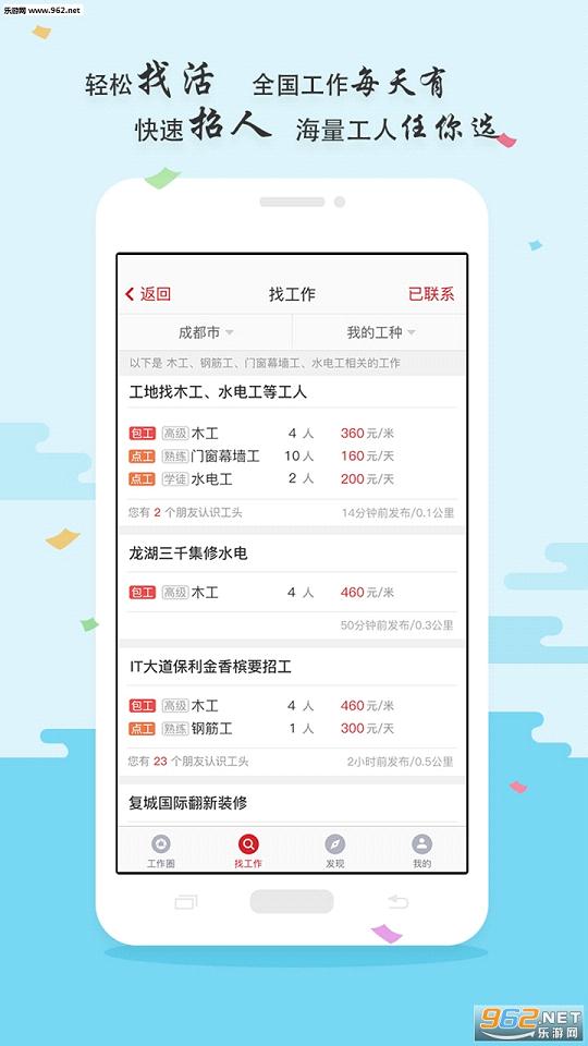 1、海量工作轻松找、优质工人快速招;