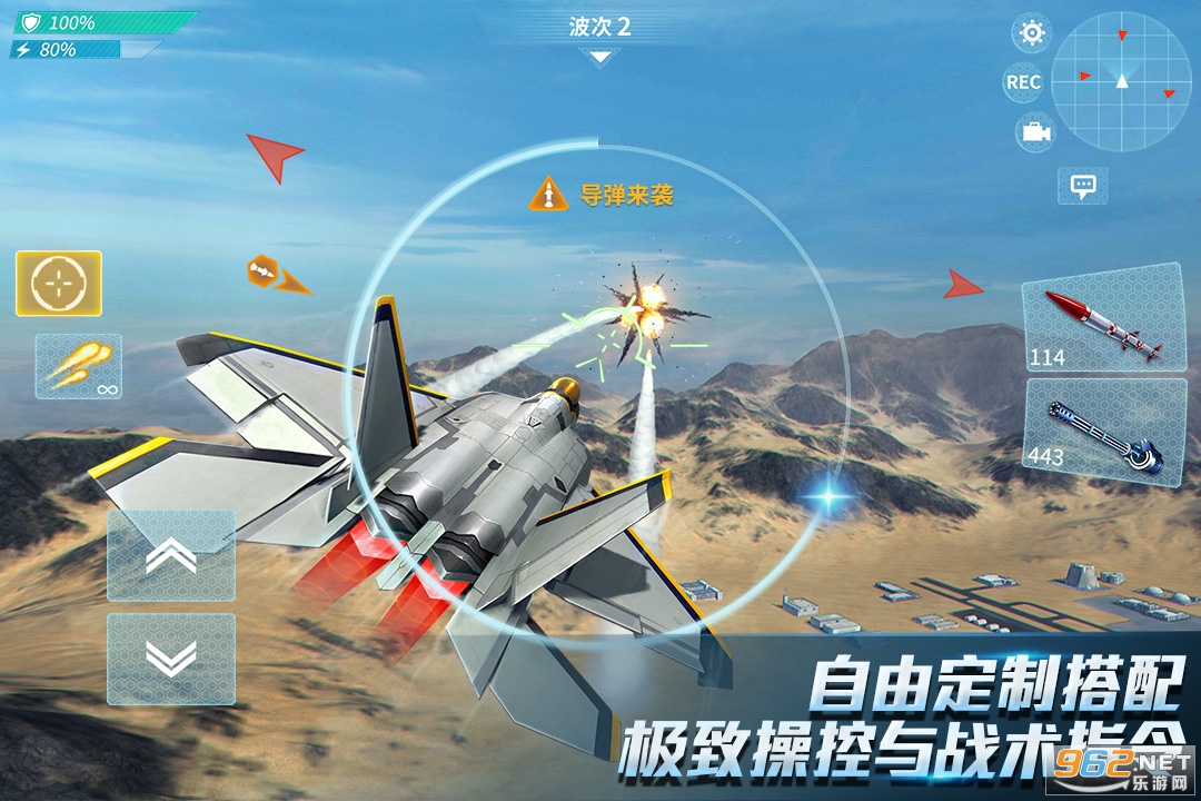 颜值即是战斗力,个性化配置酷炫战机涂装!全面打造战机专属引擎、装甲、机翼与雷达装备,升级航电火控等科技系统,使战机综合性能达到巅峰水平!自由定制键位操控,自由选择陀螺仪传感器和虚拟摇杆操作,带您体验身临其境的360度自由飞行。执行眼镜蛇、高低YOYO或滚桶式战术飞行特技配合干扰弹释放,有效躲避敌机的攻击!