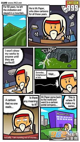 《卡通999 Cartoon999》是由曾经打造了人气游戏《地牢999层》的开发商Ji GukHwan全新推出的一款类似玩法的手机游戏。游戏将讲述画家Mr.Paper的故事,喜欢此类游戏的玩家不要错过哦。你在山上闭关了50年,只为了创造出一幅完美的漫画!有一天,你向世界展示了你的成品。但是,你竟然只收到了10美分的报价。你怒不可遏,决定用自己的漫画去改变全世界!、