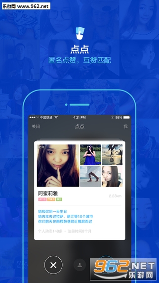 点点:全新上线的交友方式,互相点赞可以匹配聊天。如果喜欢的人也喜欢你,肯定是这个世界上最开心的事情。