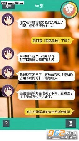 《你相信神吗?汉化版》是一款日系类型的趣味类型的经典的对话文字类型的手游,游戏的玩法的玩法就是解谜恋爱类型的,游戏不错,日前正式上线更新为全新的汉化版,游戏不错,期待玩家日前正式上线下载试玩!