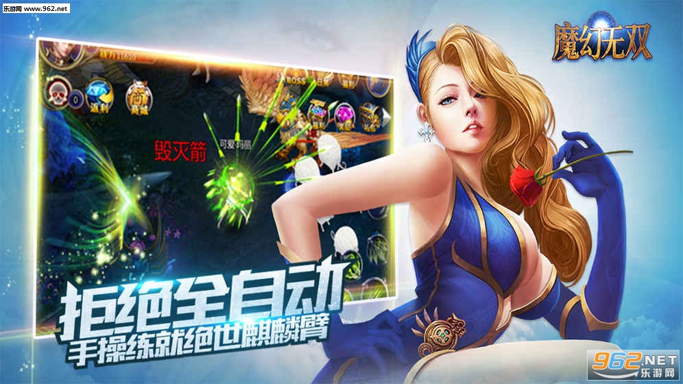 欧美城镇和唯美人物故事的激情融合,无体力畅爽战斗,三职业多阵营联合对抗,端游式职业互补,各色系统极限养成,装备打造、技能符文、即时竞技、野外Boss、婚恋系统、世界boss、公会争霸、跨服单挑!