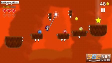 游戏一共有20个大关卡,共计200个小关卡等着玩家来挑战。随着游戏的不断进行,关卡的闯关难度也将逐渐增加,并且各种穿梭齿轮、尖刺,以及深渊(抢驻新服)等陷阱更是多不胜数,非常考验玩家的操控能力。譬如在第三大关卡中,玩家要想过关的话,非得使用“十八般武艺”不可,因为除了传统的跳跃和绳索之外,你还将穿上传说中的“飞行靴”,像那只眼神呆滞的像素鸟一样,慢慢的在“虐心”的场景里面穿梭,光想想就知道有多虐了。