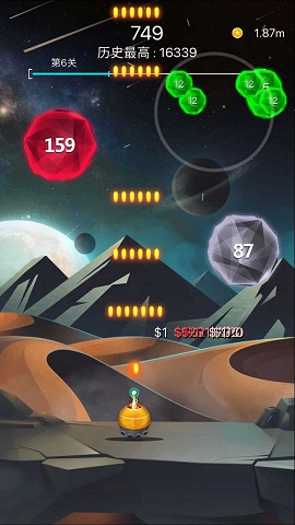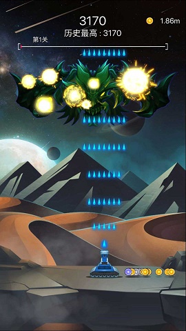 如果击败陨石可获得大量金币,金币可以升级你的飞船;