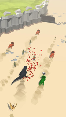 1、游戏的玩法非常简单,在一起前进的过程中,操作自己的霸王龙吞噬周围的恐龙。