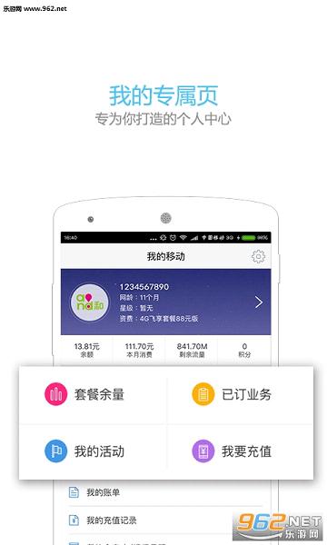用户可以自行在该移动端进行移动业务的办理,移动套餐的升级,话费流量的查询等。