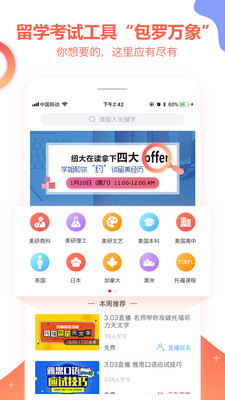 托福、雅思、GRE、GMAT、SAT、ACT,考试简介、预测机经、解题技巧...精彩直播内容享不停。