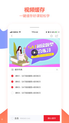 录播回放:错过直播不用担忧,提供课程回放和课件资料下载供您随时回看;视频缓存:课程视频本地缓存,让您随时随地可以想看就看;竞争力测评:三分钟帮您了解您的留学优劣势!优惠券:让您以更优惠的方式去学习留学、考试课程,欢迎随时联系小侃老师索取各种优惠大礼包!
