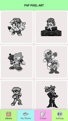 像素艺术星期五之夜体验一款非常有趣的艺术填充色彩游戏,超多你喜欢的人物模型随时都能免费在这里体验观看,感受当下更多好玩的休闲系列挑战玩法,感受跟多画面风格,能够自己上色,描绘出不同色彩的任务模型,有需求的小伙伴快来体验吧!