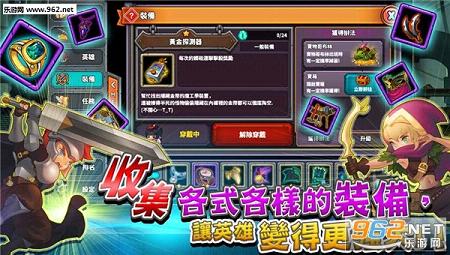 通过冒险闯关模式,击败怪物之后可以获得各项宝物和英雄
