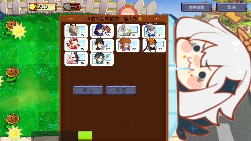 1、游戏一共有10个原神角色僵尸,并且拥有不同的攻击方式,需要消耗一定的阳光才能召唤。